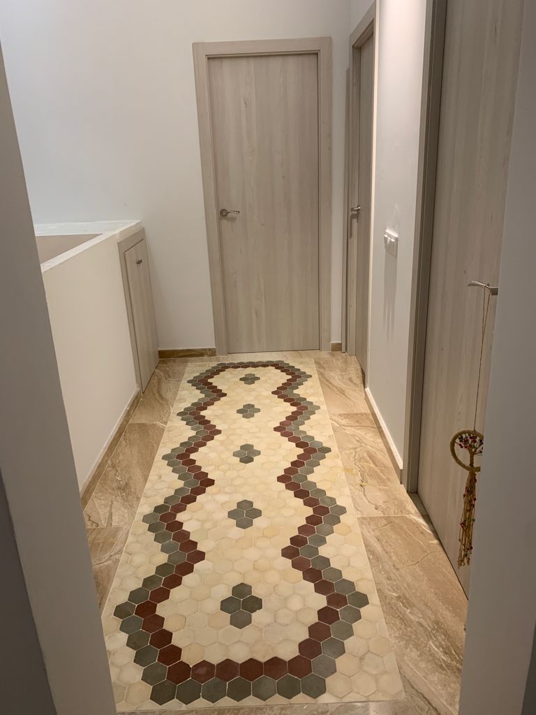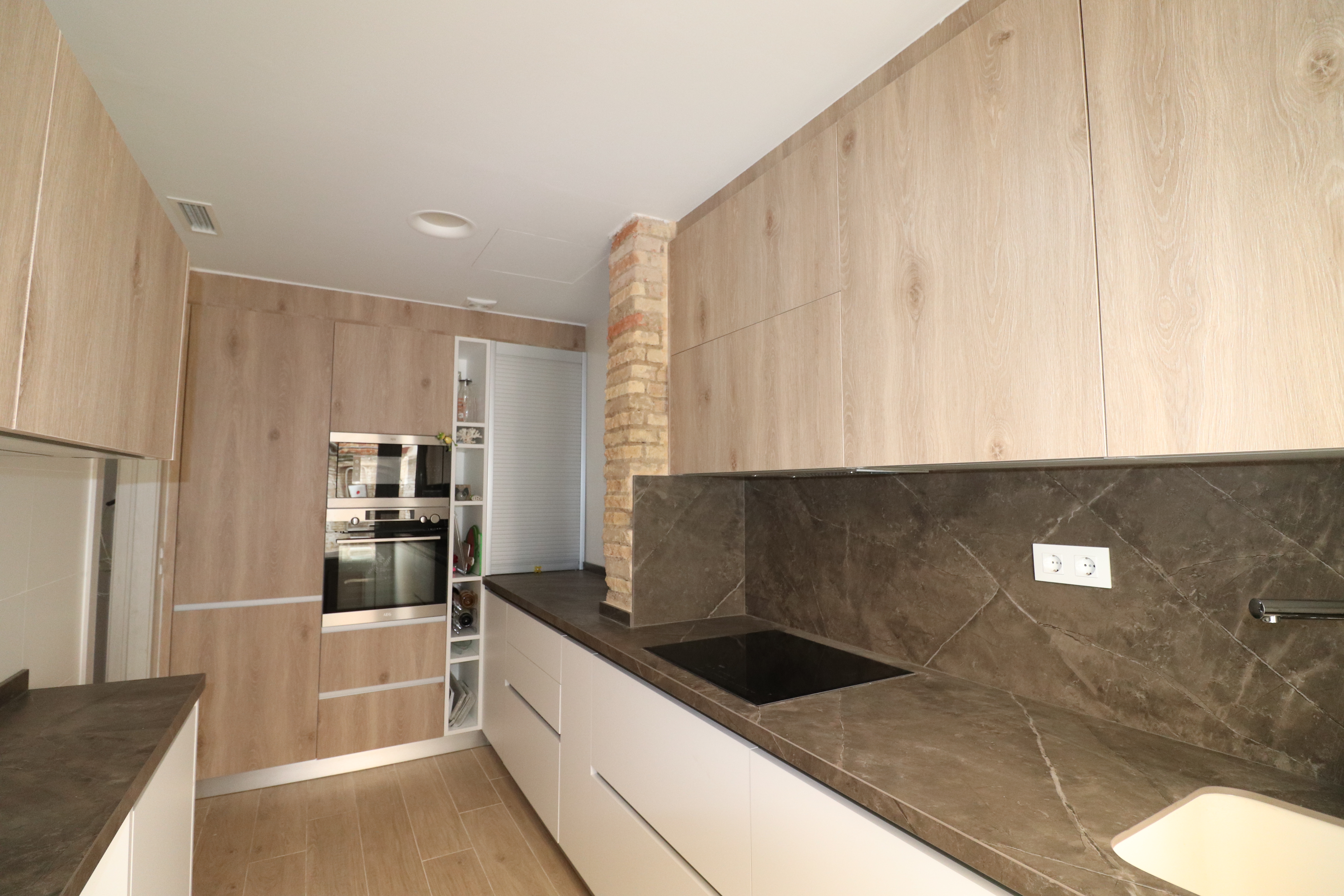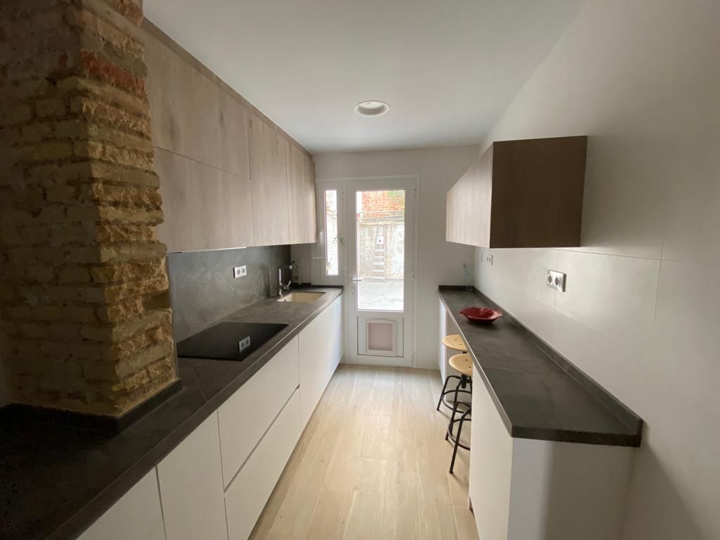 La actuación comprendió la adecuación de la vivienda a la normativa vigente, con el mantenimiento de las características originales de la fachada al igual que las viviendas contiguas. Recuperación de mosaico original, ladrillo original en paredes y pilares y vigas de madera.