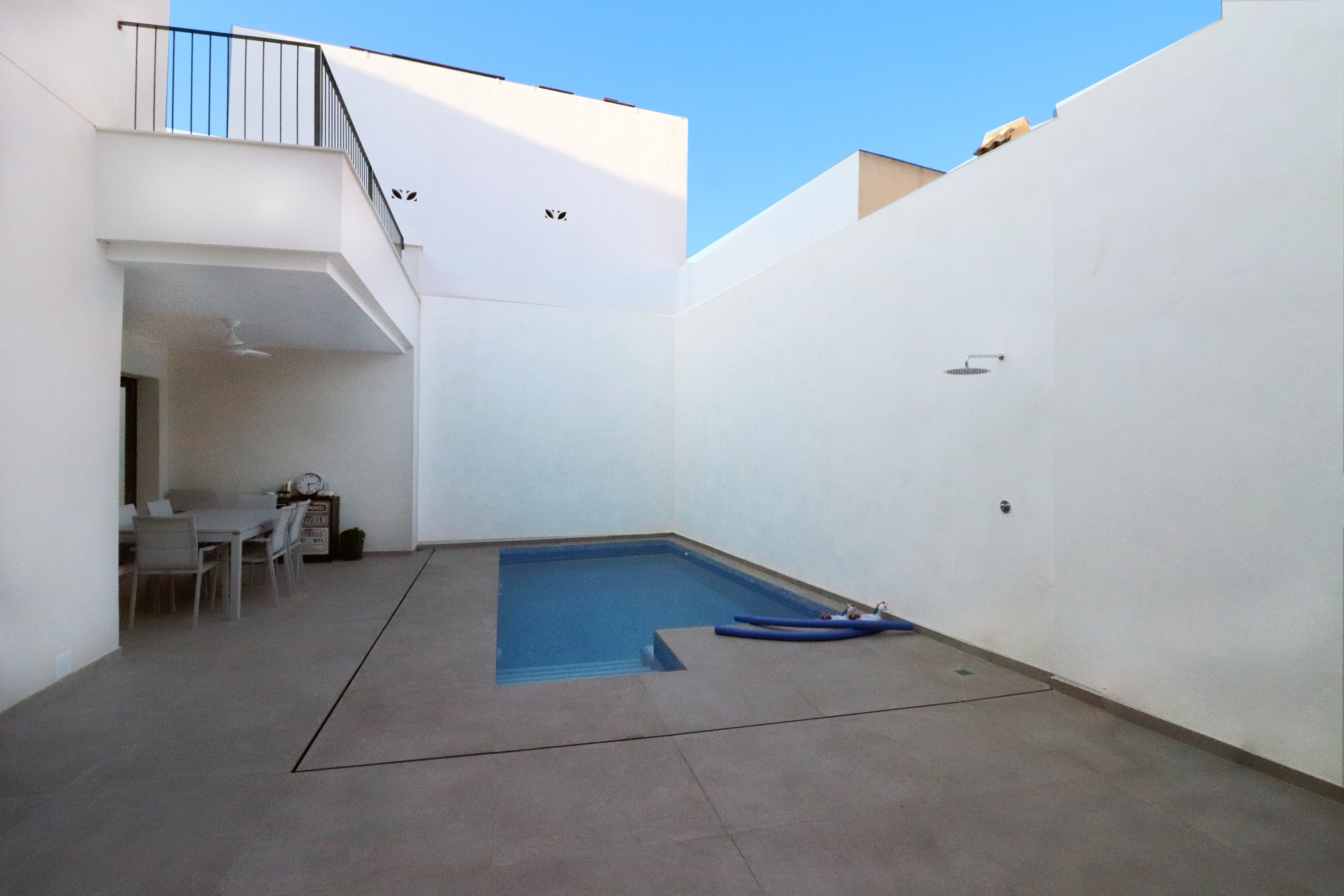 Vivienda ubicada dentro del casco urbano, construida entre medianeras, 2 plantas, azotea, en planta baja garaje y patio interior en la que se ubica una pequeña piscina. Las plantas están comunicadas tanto por escaleras como por ascensor.
