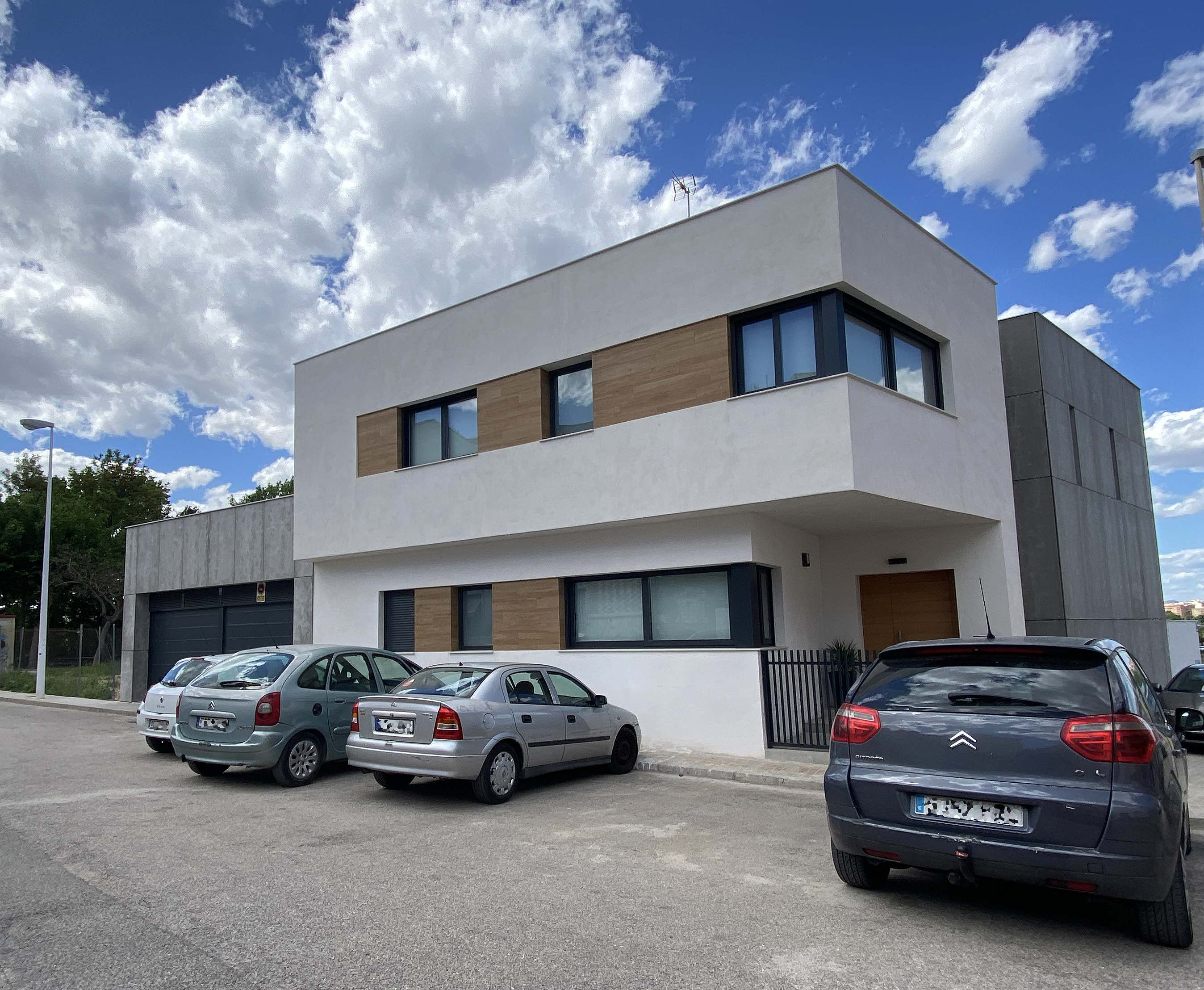 Ejecución vivienda unifamiliar aislada en parcela ubicada en urbanización de Picassent. Fue resuelta en dos volúmenes diferenciados en altura, con dos plantas más un sótano. La pieza de planta baja alberga las estancias diurnas con relación directa a los espacios exteriores y la segunda pieza, planta alta, contiene las estancias de descanso. La planta sótano es destinada a instalaciones y almacén. El espacio exterior está formado por la piscina y zonas ajardinadas, con un aparcamiento descubierto.