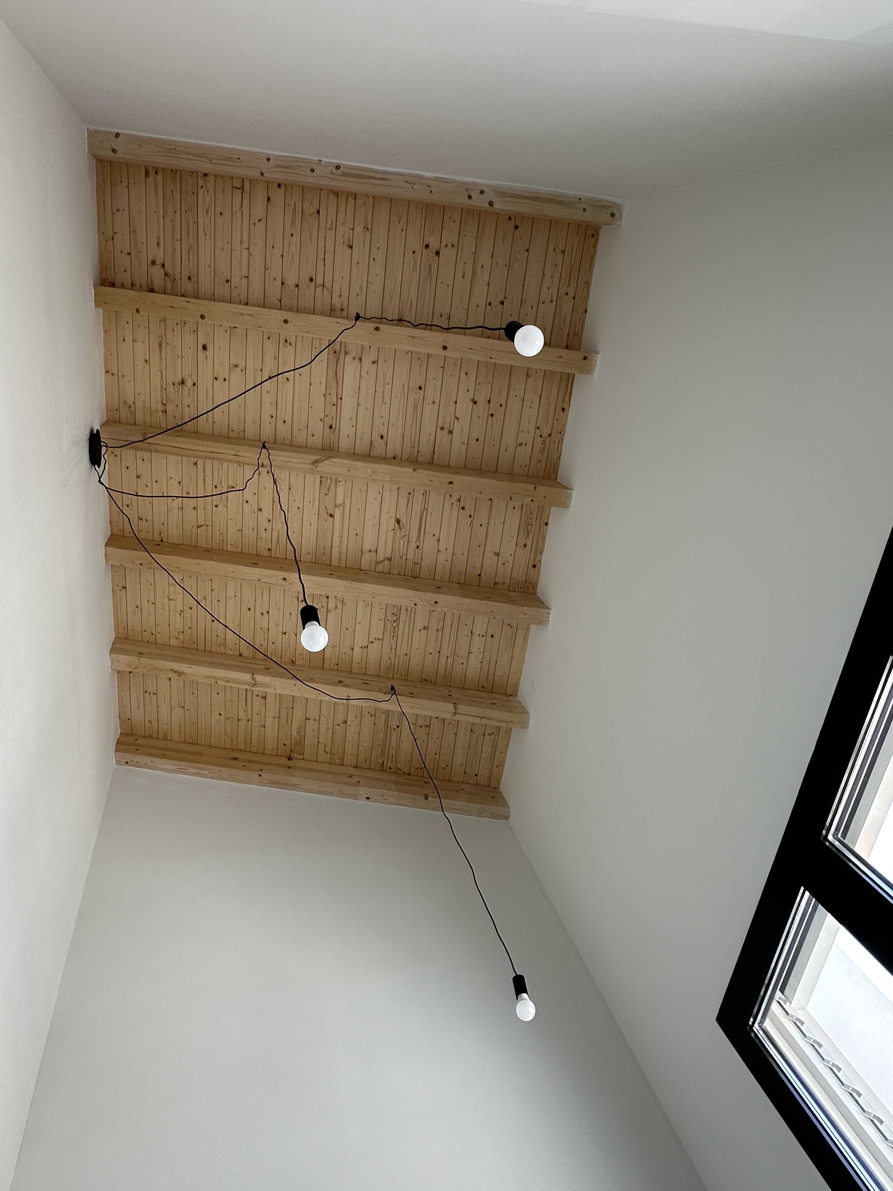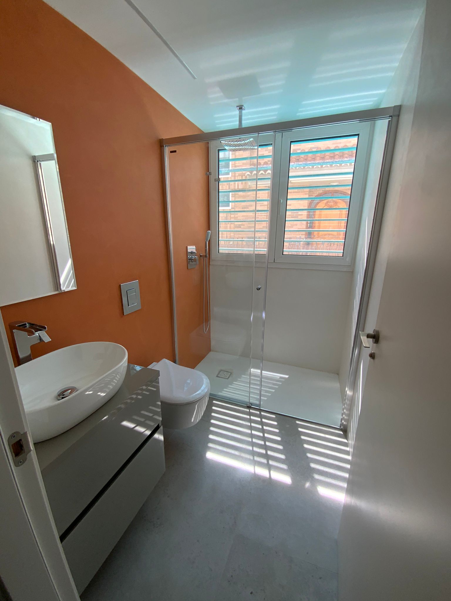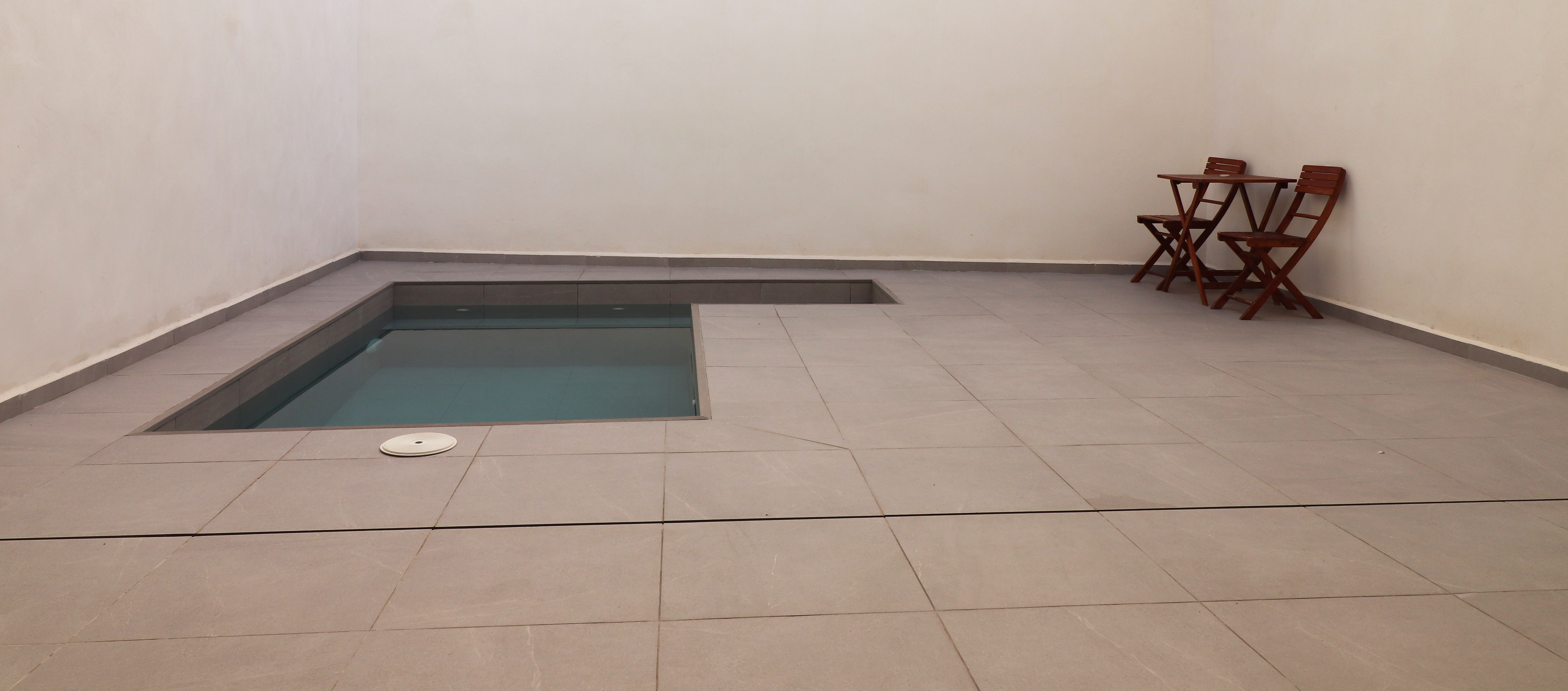 La vivienda contará con un único espacio totalmente diáfano a excepción del volumen del baño. Se proyectará una terraza cubierta abierta al patio interior, con un gran banco de obra a medida, los techos se han recuperado y dejado vistos. Los materiales nuevos se han elegido respetando la esencia del barrio, suelos de barro natural, ventanas de madera y carpintería interior de madera a medida.